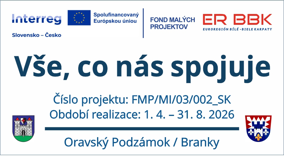 Obec Oravský Podzámok ve spolupráci s přeshraničním partnerem, naší členskou obcí mikroegionu obcí Branky, od 1. 4. oficiálně odstartovala realizaci dalšího projektu zaměřeného na upevňování přeshraničních vztahů a rozvoj společného kulturního dědictví. Projekt s příznačným názvem „Všechno, co nás spojuje“ je financován v rámci programu Interreg Slovensko – Česko 2021–2027 a jeho hlavním cílem je zintenzivnit neformální spolupráci mezi komunitami, sdruženími a obyvateli obou partnerských samospráv. Celková výše způsobilých výdajů na tuto iniciativu představuje částku 33 166,96 EUR, přičemž projekt je spolufinancován ze zdrojů Evropského fondu pro regionální rozvoj ve výši 80 procent.